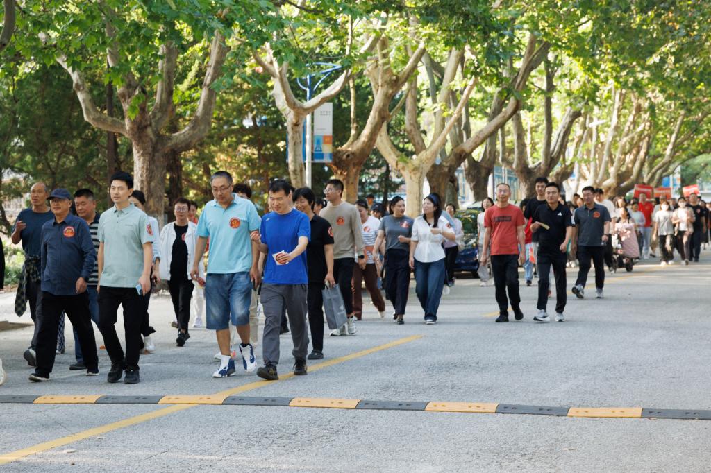 下午4时许,教职工们从办公楼广场出发,沿着幼儿园花坛至东西校区地下通道、西校区体育场,最终回到办公楼广场。健步走途中,教职工们步伐矫健、精神昂扬,大家相互鼓励、结伴前行,在校园的景致中感受运动的活力和校庆的喜悦。