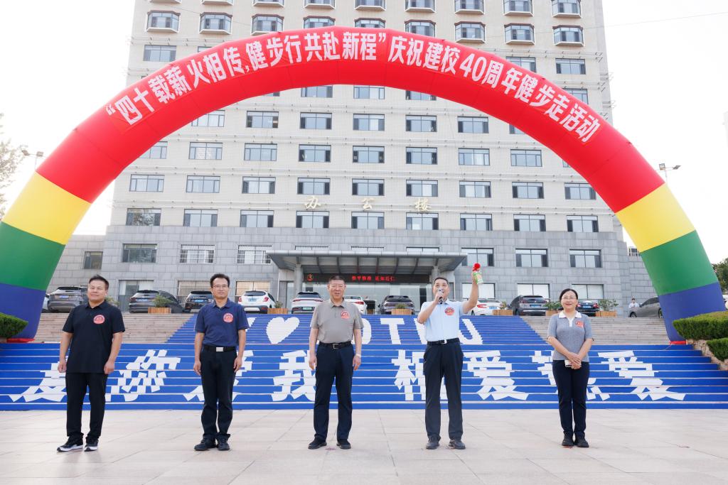 四十载薪火相传,健步行共赴新程。9月25日下午,学校举办庆祝建校40周年健步走活动。校领导陶虎、张宗伟、杜曙光、刘玉竹、李希亮与近千名教职工共同参加活动。党委副书记张宗伟宣布健步走活动开始并为本次活动鸣笛。