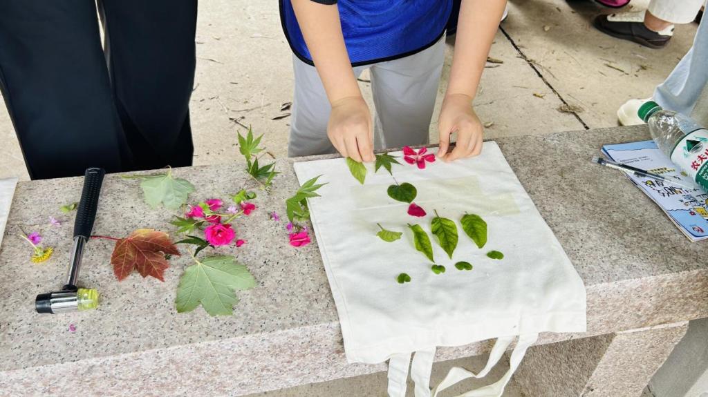 研学序幕从创新创业学院前的集结拉开,“小使者”们领取定制帆布包、饮用水等物资后,沿着校友足迹打卡东校教学楼与标志性建筑,在集章乐趣中熟悉校园;东校长廊的树叶拓印环节里,他们用自然纹理定格校园秋景,将山商浪漫“装”进作品。