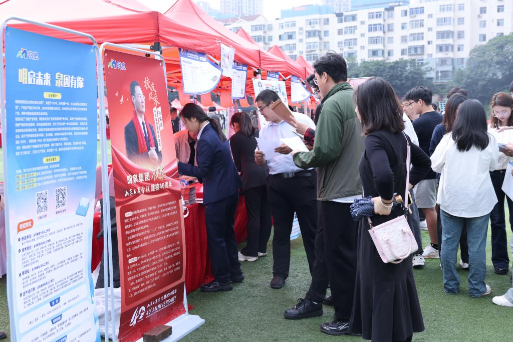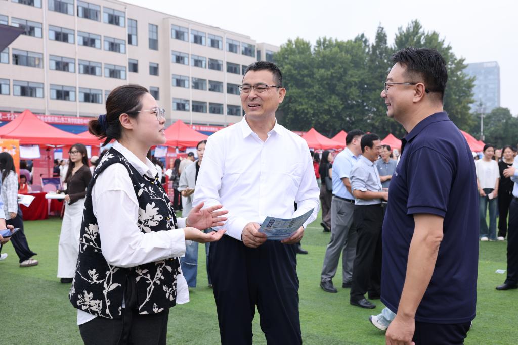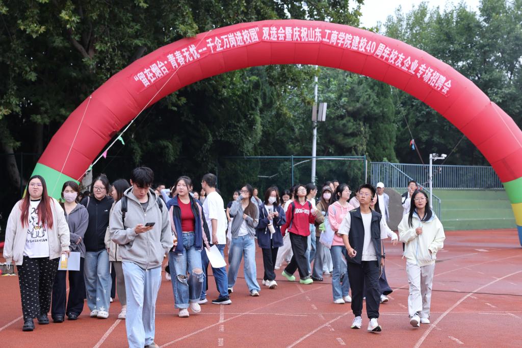 9月28日上午,“就选山东”山东工商学院2026届毕业生秋季双选会暨庆祝建校40周年校友企业专场招聘会在东校区田径场举行。校领导郭建国、陶虎、贾海宁到现场调研指导。